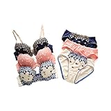 【トリンプ共同企画】小花アーチ ブラジャー&ショーツ 色違い3組セット 福袋 ブラセット ブラショーツ レ( 新品価格 |